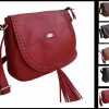 Leather hands-free bag for women, with lid,strap, external front and back pockets, 6 services.