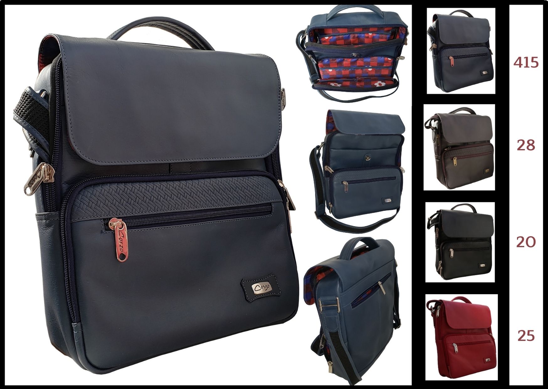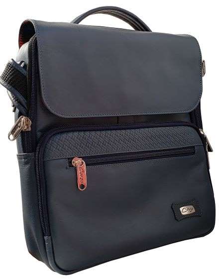 Hands-free, in leather, with cover, front pocket with gusset and back pocket, 7 services.