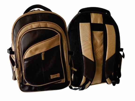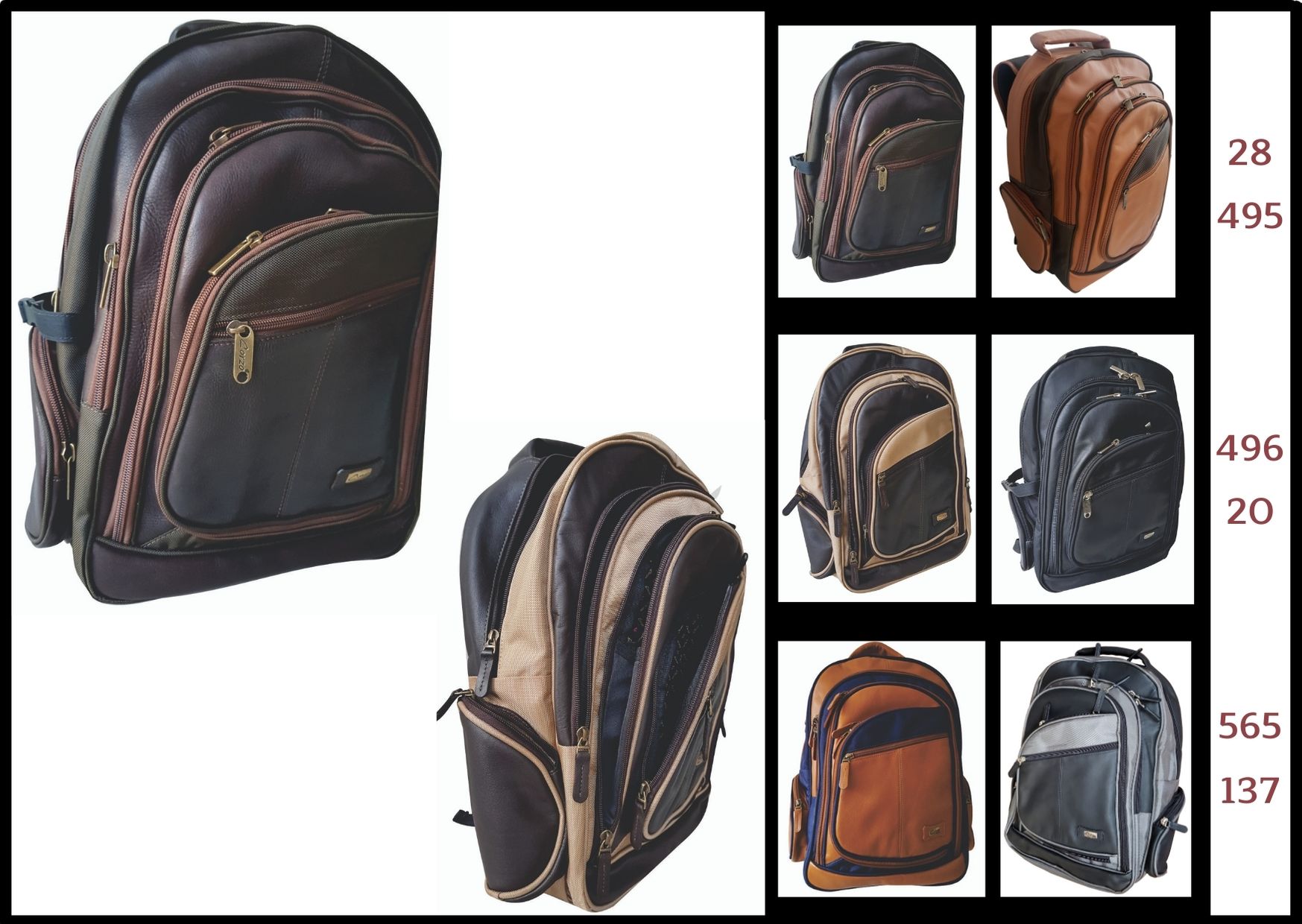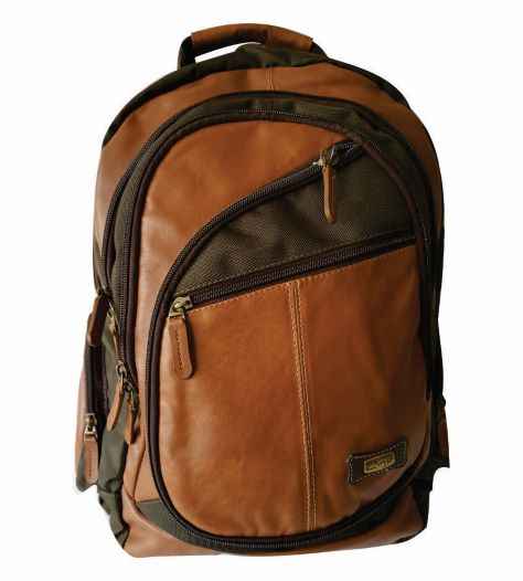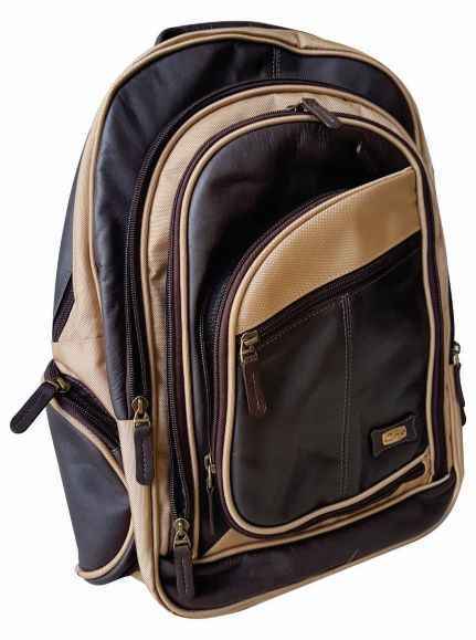 Stylish Sport Backpack, made of genuine leather and fine canvas, with computer holder, 17 services.